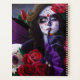Eine Fee in einem Zuckerschädel-Tag des toten Make-up mit allen lila umgeben von rote Rosen und Schädel