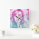 - Schöne abstrakte Kunst, Square Clock. Farbenfrohe Skizzierung einer hübschen Dame mit zuckerfarbenem Schädel. - Original digitales zeichn von Raphael Studio - "Rainbow". - Elegantes, künstlerisches und einzigartiges Design.