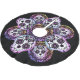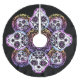 Ein Weihnachtsbaumrock zum Thema "Tag der Toten" Mehrere verzierte und farbenfrohe Zuckerschädel auf farbenfrohen Doilien auf schwarzem Hintergrund. Das kann auch zu Halloween funktionieren. Es kann die ganze Saison bleibe werden. Ich Liebe, wie hübsch es mit allen Farben aussieht.