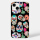 Helle und farbenfrohe Bilder von Zuckerschädeln machen ein lustiges Muster auf diesem einzigartigen Handy-Fall. Es gibt mehrere verschiedene Schädelbilder, alle individuell in verschiedenen Farben und auf einem dramatischen schwarzen Hintergrund platziert.