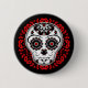 Zuckerschädel auf rotem Damast Button