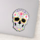Ein einfacher weißer Schädel, der wie ein mexikanischer Zuckerschädel dekoriert ist.