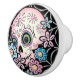 Sweet Dia de los Muertos Zuckerschädel mit Blume in Farbtönen rosa Set auf einem Spinnennetz.