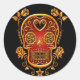 Zuckerschädel mit Rose, gelb und rot Runder Aufkleber