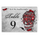 Zuckerschädel-Tischnummer-Platzkarten. Großer Dia De Los Muertos Day des toten Zuckerschädelentwurfs in Rotem, in Schwarzem, Weiß und Grau. Diese Karte hat die Hochzeits-Empfangs-Tischnummer auf der Front und einer Stelle, zum Ihrer Gastnamen für diese Tabelle hinzuzufügen, die Zahl für jede Karte zu ändern, die Sie Kauf wollen und schlagen. Tun Sie dies für so vieles, wie Sie für Ihren Empfang brauchen!