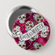 Zuckerschädel und Wirbel Rose Rot D725 Button