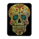 Sugar Skull Art, Tag des Toten Schädelbildes, geschaffen durch die Kombination abstrakter Formen und Muster in verschiedenen Farben. Das Bild ruft Erinnerungen von Blume-Power- oder Hippiekultur oder Rockstar-Gothic-Bildern hervor.