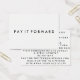 Doppelseitige schwarz-weiße Pay It Forward-Karte zur Feier des "Random Acts of Kindness" Tages und der 365 Tage-pro-Jahr-Bewegung. Die Rückseite der Karte listet einfache Ideen auf, wie wir alle Freundlichkeit teilen können, den ganzen Tag über. Jede Textzeile ist anpassbar, wenn Sie Ihre eigenen Ideen haben, können Sie jede Zeile der Liste ändern.