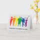 Diese Grußkarte ist bereit, mit Ihrer eigenen Nachricht auf der Vorderseite und im Inneren der Karte personalisiert zu sein. Schicken Sie ein paar Gratulationen oder Ermutigungen an einen Freund, der gerade rausgekommen ist, wünschen allen einen glücklichen Pride Monat oder senden Sie einfach ein paar bunte Geburtstagsgrüße. Diese gefaltete Grußkarte zeigt eine moderne Darstellung einer Gruppe von Leuten, die in einer Gay Pride-Parade in den Regenbogenfarben der klassischen Stolzflagge marschieren, mit einer roten, orangefarbenen, gelben, grünen, blauen und lila Person, von denen einige Zeichen auf hellgrauem Hintergrund tragen.