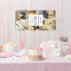 Ein elegantes New Year's 2025-Banner, das auf Ihre Namen zugeschnitten ist und mit 2 Party-Szenen mit einer goldenen Disco-Ball und Champagner-Brille, einer Maske und Tanzschuhen. Ein Aquarell in Goldtönen, Glitzer, Schwarz und Weiß. Ein moderner dynamischer Stil für Ihre Feier.
