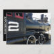Zug 2. Geburtstagseinladung. Foto der Dampfzuglokomotive mit der Nummer 2.