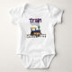 Primärfarben ziehen auf einer Strecke und blauer rot gekleideter Text mit den Aufschriften "Zug" auf T - Shirt, Karosseriebildern, Sweatshirts, Pullover-Hoodies, Fußballkarosserien, Bio Karosseriebücher, dunkle T - Shirt, lange Ärmel, T-Shirts, Hüte und andere Zugbekleidung, perfekt für den kleinen Ingenieur oder Dirigenten!