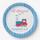 Alle an Bord! Haben Sie ein themed Geburtstags-Party des Spaßzugs mit dieser hellen und netten Papierplatte. Führen Sie die Streifen aus, die als das niedrige Muster gekennzeichnet werden. Personifizieren Sie den Text und den Namen. Koordinaten mit der gesamten Zug-Geburtstags-Party-Sammlung.