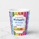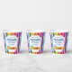 Farbenfrohe Cartoon Spielzeug Zug auf einem blauen Banner. Vorlagen, um Ihren Namen hinzuzufügen oder den Text in den Textfeldern zu löschen, um ihn leer verlassen. Mehrfarbiger Regenbogen-Streifen Hintergrund.