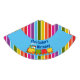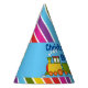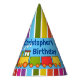 Farbenfrohe Cartoon Spielzeug Zug auf einem blauen Banner. Vorlagen, um Ihren Namen hinzuzufügen oder den Text in den Textfeldern zu löschen, um ihn leer verlassen. Mehrfarbiger Regenbogen-Streifen Hintergrund.