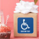 Eingabehilfen. Rollstuhlsymbol Stilisierte weiße Person auf einem Rollstuhl. Blauer Hintergrund. Eigener Text.