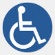 Eingabehilfen. Rollstuhlsymbol Stilisierte weiße Person auf einem Rollstuhl. Blauer Hintergrund.