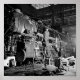 Dieses US Transportation History Foto von Jack Delano aus der Mitte des 20. Jahrhunderts besticht durch eine Lokomotive der 2000er-Klasse, die in den Läden der Chicago und der Northwestern Railroad repariert wird. CNW ist einer der wichtigsten Eisenbahnunternehmen, die über 5000 Meilen zurücklegen. Delano, der bei der Farm Security Administration beschäftigt war, dokumentierte die damaligen sozialen Bedingungen hervorragend durch Bilder, die empathisch, elegant und reflektierend der vorherrschenden Stimmung waren.