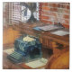 Entwürfe von Susan Savad — Der Bahnhofsmeister war der Verantwortliche des Bahnhofs. Das Büro dieses malerischen Stationsmeisters verfügt über eine altmodische Schreibmaschine und einen Vintagen Ventilator mit Klingen auf einem Holzschreibtisch mit Löchern.