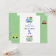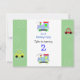 Ein lustiges Design für junge Leute zum Geburtstag. Rennwagen und kleine Spielzeugzüge in lustigen Farben. Grüne Grenzen mit Kreisdesigns.