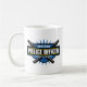 Sehr mutiger zugelassener Polizeibeamteentwurf mit gekreuzten Taktstöcken und blauem Stern der Polizei sprengte Hintergrund! Großer POLIZEIBEAMTE-Text in der Mitte mit gelben Streifen, zugelassener Text oben und am tapfersten vom tapferen unteren Text! Perfektes Geschenk für Polizeibeamten! Ausgezeichnet für Gesetzesvollstreckunggeldbeschaffer!