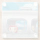Das kleine Mädchen zusammen mit einer Katze, die aus dem Fenster des Zuges schaut.