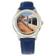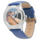 Kinderuhr aus Edelstahl mit blauem Lederarmband