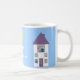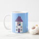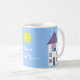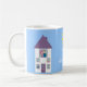 Weiße Tasse des kundengerechten Zuhause-süßen Zuhause mit einer niedlichen Cartoonillustration eines hübschen Hauses mit einem jungen Paar u. ihren Haustieren, die aus den Fenstern an einem sonnigen Tag auf einem blauen Hintergrund mit lila Grenze heraus schauen. Ein süßes u. entzückendes Housewarminggeschenk für eine Familie, die gerade sich oder für ein eben Wedpaar bewegt hat. Auch eine Spaß-Tasse für wirkliche Anwesen-Agenten! Sie können irgendwelche der Entwurfselemente bewegen, die Größe neu bestimmen oder entfernen. Der Text, der Schriftart, die Hintergrundfarbe u. die Grenze sind kundengerecht. Wählen Sie die Art, die Farbe und die Größe Ihrer Tasse. Wenn Sie irgendeine Unterstützung benötigen, wenn Sie Ihr Produkt besonders anfertigen, in Verbindung treten mit mir bitte durch meinen Speicher und ich bin mehr als glücklich zu helfen.