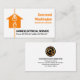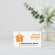 Eine orangefarbene Zuhause wird mit einer elektrischen Stromleitung betrieben. In diesem Kabel befinden sich der Firmenname und die Kontaktdaten in der Nähe der Kartenbasis.