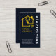 Eine dunkelblaue Abdeckung mit einem gelben Zuhause-Stromnetz. Unter diesem Design liegt Ihr angesehener Name mit dem invertierten Jobtitel "Elektriker" auf der rechten Seite. In der Nähe der Kartenbasis haben Sie die Kontaktdaten.