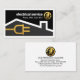 Cover bietet ein Zuhause-Frame-Design, das mit einem goldenen Power-Plug ausgestattet ist. Oben haben Sie neben dem Telefonkontakt den Firmennamen "Elektroservice". Daneben ist ein goldenes Zuhause Power Logo, das Sie verwenden können. Auf der Rückseite, in einem weißen Cover, das Gold-Logo ist oben, gefolgt von dem Firmennamen, Kontaktdaten und einem Slogan, um Ihre Dienste zu veröffentlichen. Ein kreatives Design für Elektriker. #electrician #electrical #electricalservices #electricaltrack #lighting #lighting #lighting #electricbulb #plug #electricpower #electricalwire