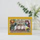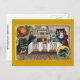 Großmutter und Großvater begrüßen aufgeregt ihre Tochter und ihre Familie in dieser Vintagen Erntedankpostkarte ab 1908. Der Speisetisch wird mit einer weißen Tischdecke und einem Set für Abendessen bedeckt. Eine Katze geht über eine bunte Lappenwolldecke. Ein Zeichen "des Zuhause-süßen Zuhause" hängt über dem Umhang. Es gibt Einfügungen eines Truthahns, der Kürbise und des Mais.