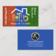 Farben des Landes, blauer Himmel und grüner Rasen bedecken das Gesicht der Karte. Hier steht ein Dach mit goldenen Handywerkzeugen darunter. Die Goldwerkzeuge können einige der von Ihnen angebotenen Dienstleistungen darstellen, z.B. die Leiter und den Pinsel für Umbau und Malerei, der Hammer für Zuhause-Reparaturen usw. Unter den Werkzeugen befindet sich der Telefonkontakt mit Ihrem prestigeträchtigen Namen in der oberen rechten Ecke und der Firmenname "HANDYMAN" in die entgegengesetzte Richtung. Auf der Rückseite, in einem himmelblauen Cover, befindet sich oben ein goldenes Hammer-Logo. Danach folgen Ihr Name, die Kontaktdaten und ein Slogan, um Ihre Dienste bekannt zu machen. Ein großartiges Design für Handwerker, Gebäude und Bauthemen.