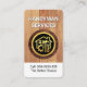 Auf einer Holzschicht befindet sich ein Rundholzplakat in der Nähe des Zentrums, auf dem sich ein goldenes Logo "Handyman-Zuhause" befindet. Ganz oben steht der Firmenname "HANDYMAN SERVICES", den Sie mit den Kontaktdaten am Boden, in einer weißen Schicht, ändern können. Auf der Rückseite, in einem weißen Umschlag, ist das goldene Logo oben. Danach folgen Ihr Name und die Kontaktdaten. Eine großartige Karte für Handwerker, Zimmerleute, Gebäude-Auftragnehmer.