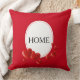 Zuhause Herzen auf rot-weißem Kissen. Zuhause Text und Herz nur auf der Vorderseite.