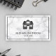 Elegante Visitenkarte mit moderner Typografie auf weißem Marmorboden. Fügen Sie Ihren Namen und Ihre Kontaktdaten hinzu, um einen bleibenden ersten Eindruck zu machen.