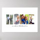 Laden Sie vier beliebte Fotos hoch, um ZUHAUSE zu schreiben und die Nachricht zu personalisieren, um ein einzigartiges Poster zu erstellen, das für Ihre Zuhause gerahmt werden kann.