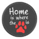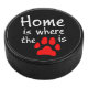 Ein Wortspiel mit dem Zitat "Zuhause ist, wo das Herz ist", ist diese Zuhause, wo der Pfotendruck Black Hockey Puck ist mit den Worten "Zuhause ist, wo das [Pfotenprint-Bild] ist", mit dem Pfotenprint in Rot, das "Herz" darstellt. Das perfekte Geschenk für Liebhaber von Haustieren.