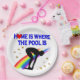 ZUHAUSE IST DER POOL FÜR DIESEN SCHWIMMER PAPPTELLER