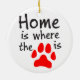 Ein Wortspiel mit dem Zitat "Zuhause ist, wo das Herz ist", dieses runde Ornament hat die Wörter "Zuhause ist, wo das [Pfotendruckbild] ist", das Pfotenbild in rot, das das "Herz" darstellt. Das perfekte Geschenk für Liebhaber von Haustieren.