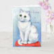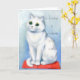 Diese wunderschöne Karte für Katzenliebhaber zeigt eine wunderschöne weiße Katze, die von einem gemütlichen roten Kissen sitzt und sehr auf Zuhause schaut. Die Illustration stammt von dem berühmten englischen Katzenkünstler Louis Wain. Die Formulierung auf der Vorderseite der Karte liest Zuhause ist, wo die Katze ist. Die Karte wäre ideal für Freunde und Verwandte, die Katzen Liebe haben.