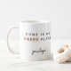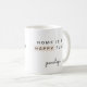 Niedliche schwarz-weiß "Zuhause is my happy place" typografische Tasse mit personalisiertem Namen und hübschem Blush-Element.