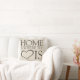 Ein süßes Familienkissen mit dem Ausdruck "Zuhause ist, wo das Herz" und Ihr kundenspezifischer Familienname ist, der in der modernen Typografie mit einem tustic Vintagen Bauernhausblick gedruckt wird. Die Buchstaben werden im dunklen Braun gedruckt und der Hintergrund des Kissens ist in einer hellen natürlichen Beige. Ein einzigartiges Geschenk für einen Housewarming oder eine Familiengelegenheit.