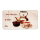 Zuhause hergestellt köstliche Konservenfabrik mit einem Kupfertee+Topf, einer Tasse Tee und einer Glasplatte mit Marmelade