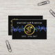 Eine blaue elektrische Ladung durchquert den Weltraum, um eine goldene Zuhause mit einem elektrischen "Buchstaben-e"-Schaltbild Power. Ganz oben steht der Firmenname "Elektroarbeit & Dienstleistungen", den Sie neben den Kontaktdaten in der Nähe des Basisbereichs ändern können. Auf der Rückseite, in einem schwarzen Cover, sind die Kartendetails auf dem verlassen mit dem goldenen Buchstaben-e-Logo oben platziert. Danach folgen Ihr Name und Ihre Kontaktdaten. Eine großartige Karte für Elektriker.