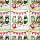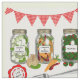 Ein lustiger, neuer Stoffdruck mit Vintagem Design, in dem die 1. Preisträgergläser aus Zuhause gefertigten Zwiebeln, Paprikaschoten, Cornichons, Oliven und Karotten in quadratischen Fenstern dargestellt sind, die mit den Fahnen der Karo in Rot und Weiß verziert sind. Ein sehr niedliches und gemütliches Stoffdesign, geeignet für viele handwerkliche und nähende Projekte.