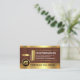 Über dem Blatt wird das gleiche Holzmotiv mit dem goldenen Logo oben, gefolgt von Ihrem angesehenen Namen, den Kontaktdetails und einer Slogan-Beschriftung verwendet, um Ihre Dienste zu veröffentlichen.