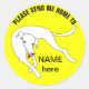 Senden Sie mir einen Niedlichen Hund auf einem hellgelben Aufkleber mit Zuhause Buchzeichen