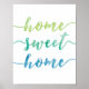 Zuhause Sweet Zuhause grün und blau Poster drucken moderne handgeschriebene Typografie in coolen Blau-, Aqua- und Wasserfarben. Helles und perfektes Drucken für die Zuhause.