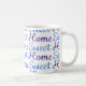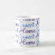 Zuhause-süßes Zuhause scripted typografischen Entwurf in einem Wiederholungsmuster in Blauem und in Cyan-blauem auf einem weißen Hintergrund.